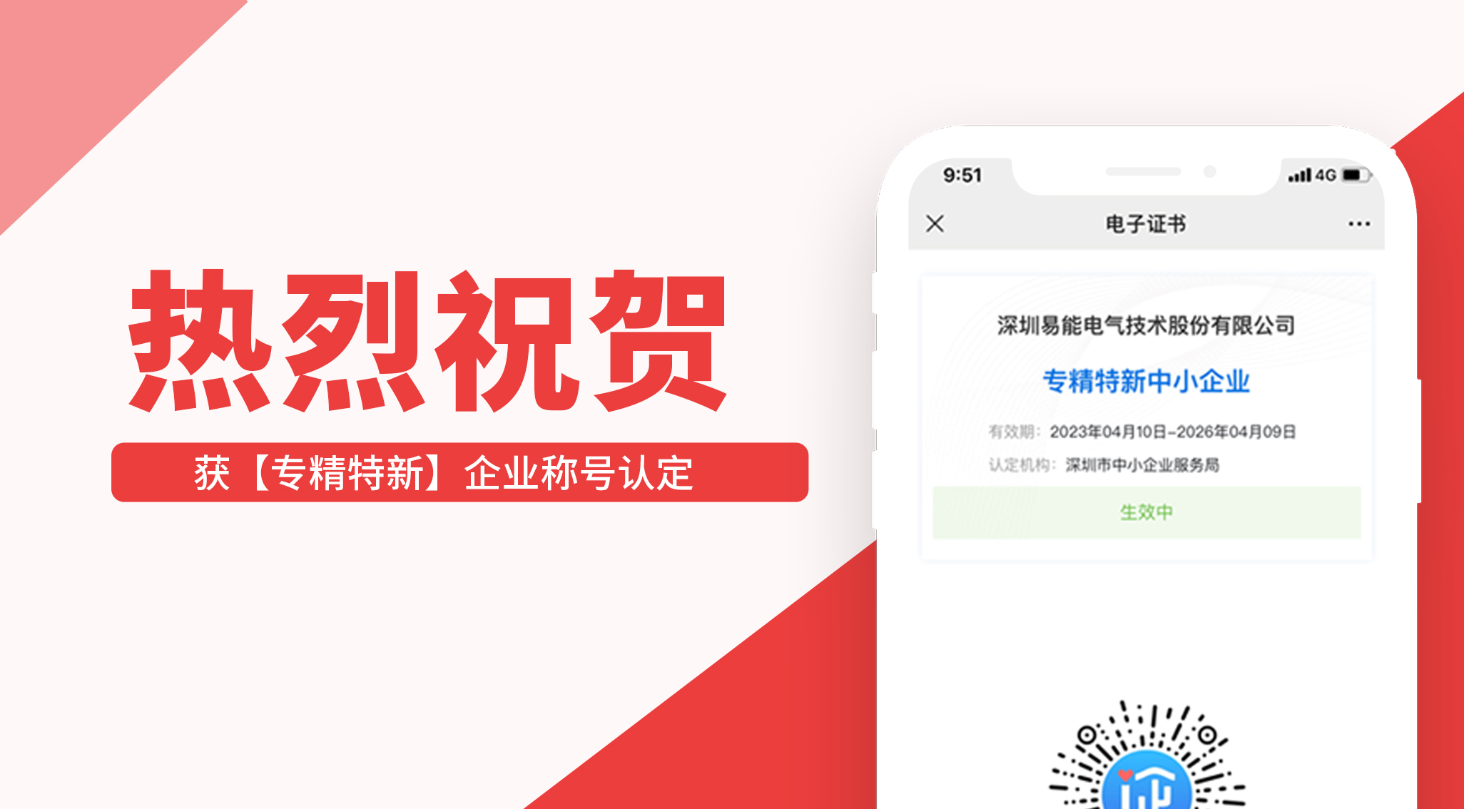 喜報(bào)I易能電氣榮獲【專精特新】企業(yè)榮譽(yù)稱號